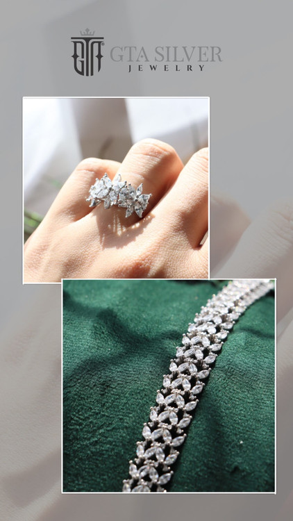 ست دستبند و انگشتر مارکیز خور نقره ۹۲۵ عیار