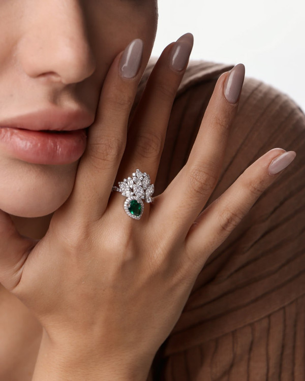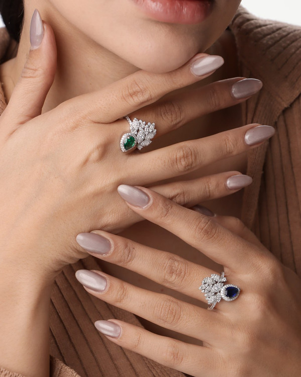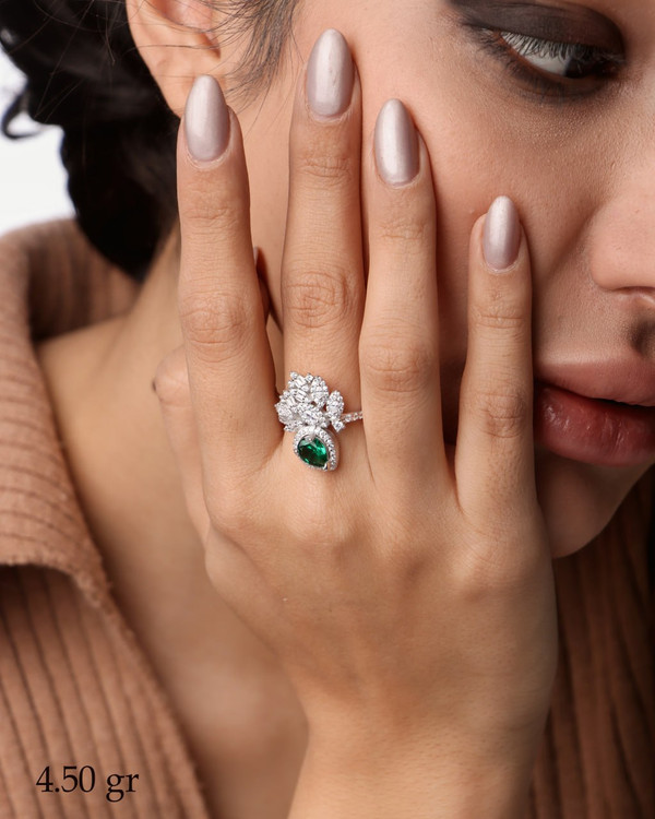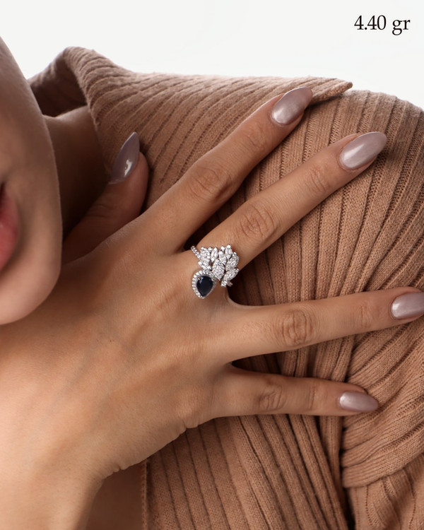 اگر بهدنبال یک انگشتر لوکس، درخشان و خاص هستید که ظاهری کاملاً مشابه طلا سفید داشته باشد، این انگشتر جواهری نقره ۹۲۵ عیار با نگینهای مارکیز بهترین انتخاب برای شماست. طراحی ظریف و چیدمان هنرمندانهی نگینهای مارکیز، جلوهای فوقالعاده چشمگیر و مجلسی به این انگشتر بخشیده است.