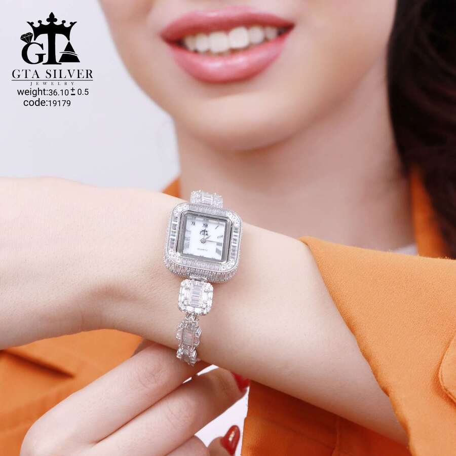 ساعت جواهری رودیوم با نگین های برلیان, کاری بسیار ظریف و زیبا همراه با روکش آب طلای سفید می باشد. عیار این کار همانند تمامی کار های موجود عیار استاندارد 925 می باشد.