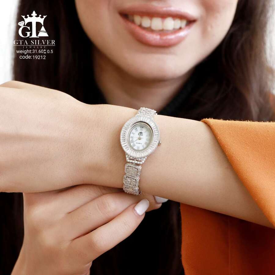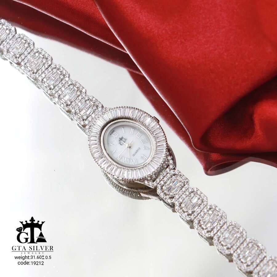 ساعت جواهری رودیوم با نگین های برلیان و باگت, کاری بسیار ظریف و زیبا همراه با روکش آب طلای سفید می باشد. عیار این کار همانند تمامی کار های موجود عیار استاندارد 925 می باشد.