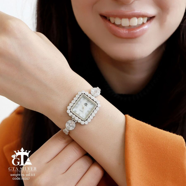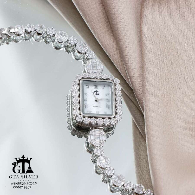 ساعت جواهری رودیوم با نگین های برلیان, موتور میوتای ژاپن کیفیت درجه 1 کاری بسیار ظریف و زیبا همراه با روکش آب طلای سفید می باشد.
