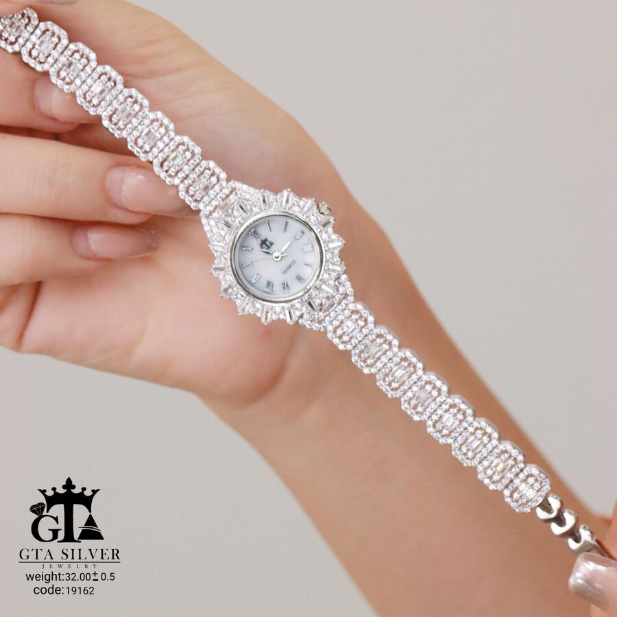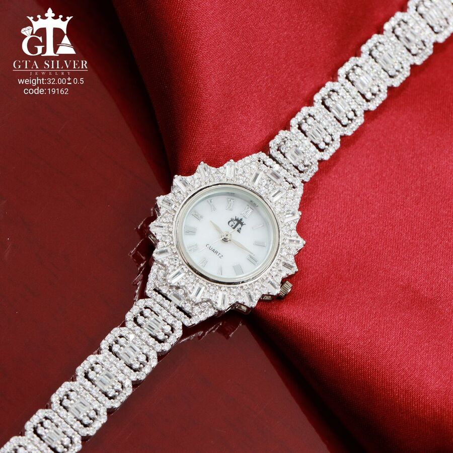 ساعت جواهری رودیوم مارک GTA طرح امرالدکات با نگین های برلیان, کاری بسیار ظریف و زیبا همراه با روکش آب طلای سفید می باشد. عیار این کار همانند تمامی کار های موجود عیار استاندارد 925 می باشد.