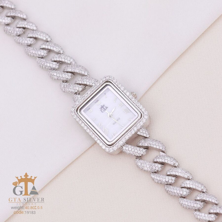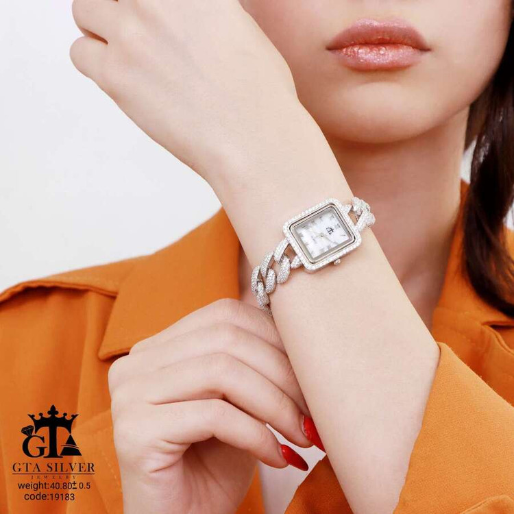 ساعت جواهری رودیوم طرح کارتیر با نگین های برلیان, کاری بسیار ظریف و زیبا همراه با روکش آب طلای سفید می باشد. عیار این کار همانند تمامی کار های موجود عیار استاندارد 925 می باشد.