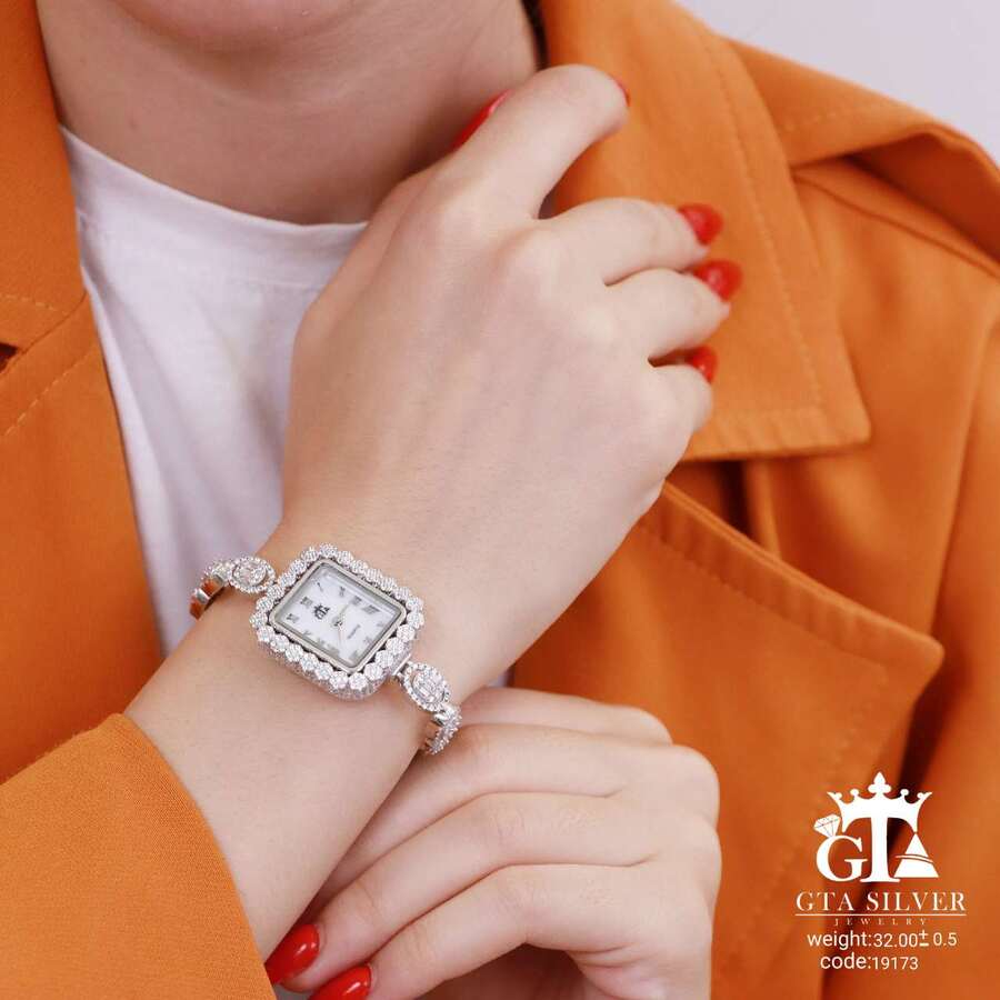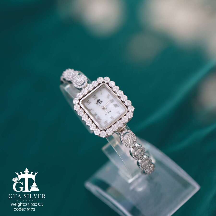 ساعت جواهری رودیوم با نگین های برلیان, کاری بسیار ظریف و زیبا همراه با روکش آب طلای سفید می باشد. عیار این کار همانند تمامی کار های موجود عیار استاندارد 925 می باشد.