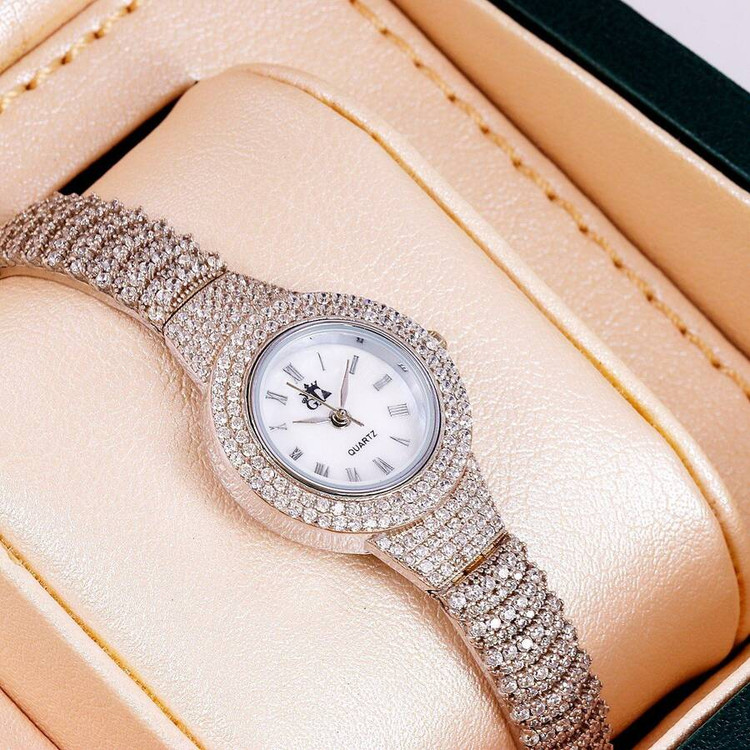 ساعت طرح تنیسی النگویی با روکش طلاسفید و موتور طلایی میوتای ژاپن که همراه شناسنامه اصل شرکتی و کارت گارانتی ارائه میگردد.