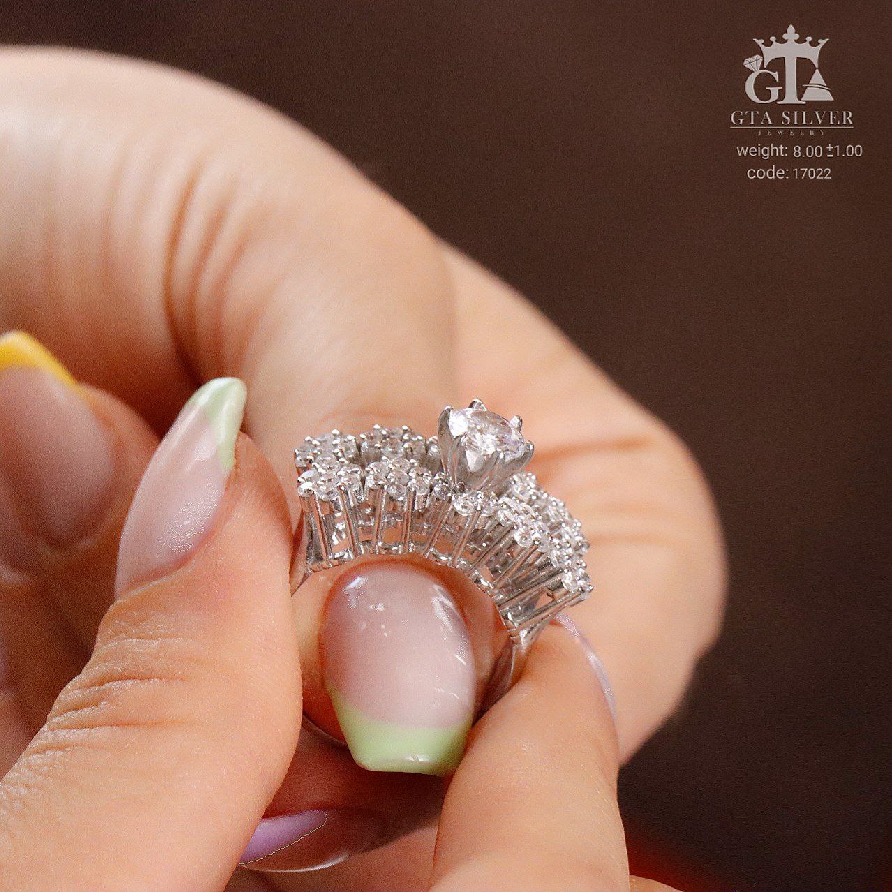 حلقه پشت حلقه جواهری فلاور نقره 925 عیار برند gta کد 021