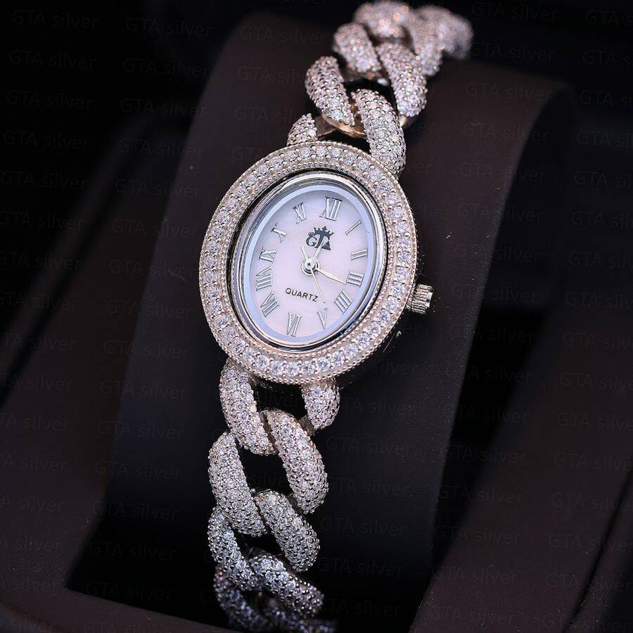 ساعت طرح زیبا و محبوب کارتیه با دور موتور بیضی شکل که نگین کاری شان با روش میکروستینگ انجام شده است. موتور طلایی میوتای ژاپن هست و دارای دو سال گارانتی که شناسنامه محصول همراه محصول ارسال میشود.