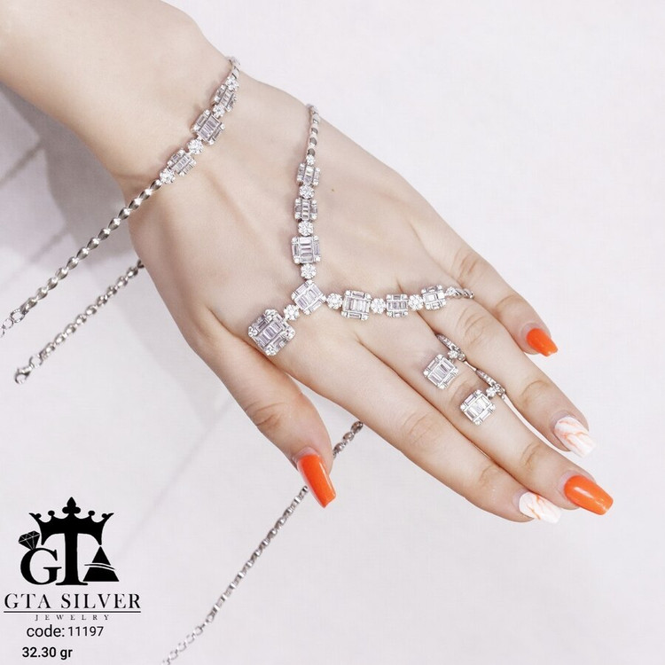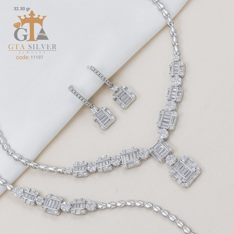 سرویس نقره مدل مارسا همراه با روکش آبطلای سفید؛ عیار 925، تمامی نگین های این سرویس جدید با روش جدید میکروستینگ مخراج کاری شده است.