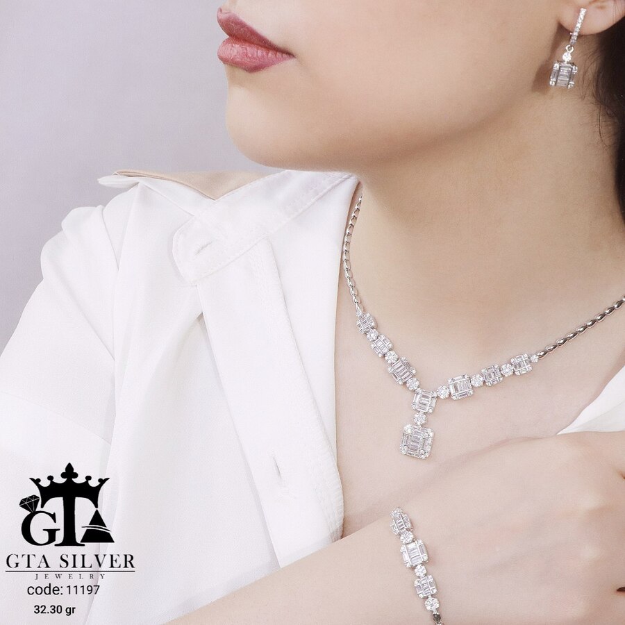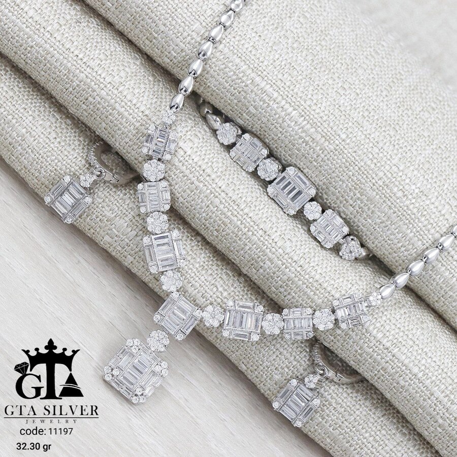 سرویس نقره مدل مارسا همراه با روکش آبطلای سفید؛ عیار 925، تمامی نگین های این سرویس جدید با روش جدید میکروستینگ مخراج کاری شده است.