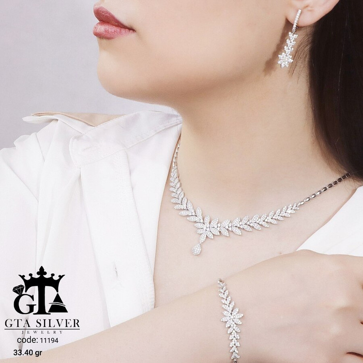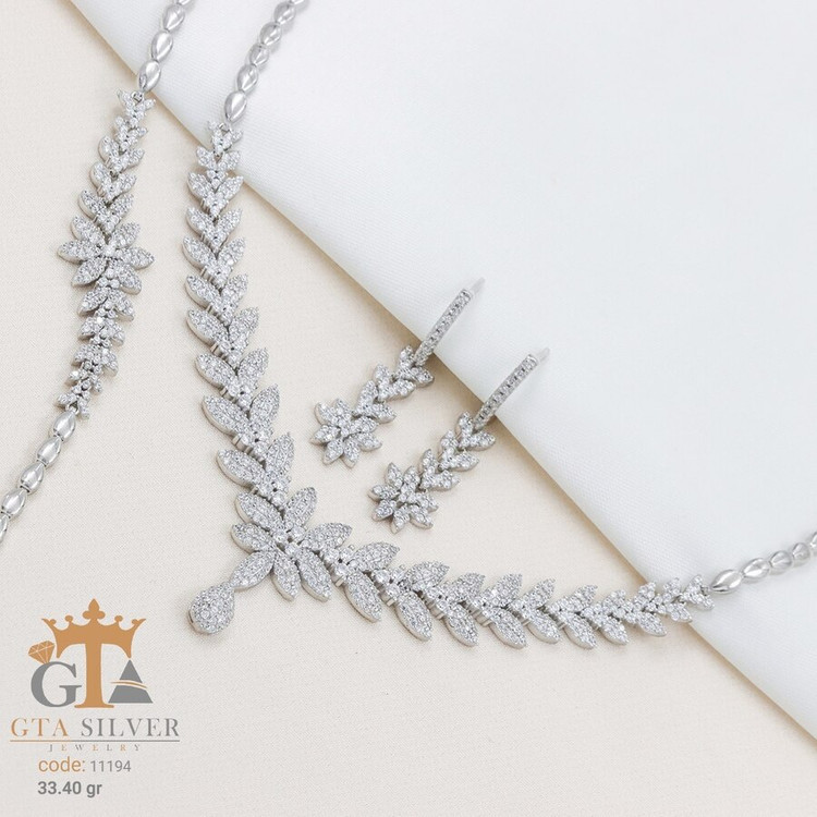 سرویس نقره مدل مارسا همراه با روکش آبطلای سفید؛ عیار 925، تمامی نگین های این سرویس جدید با روش جدید میکروستینگ مخراج کاری شده است.