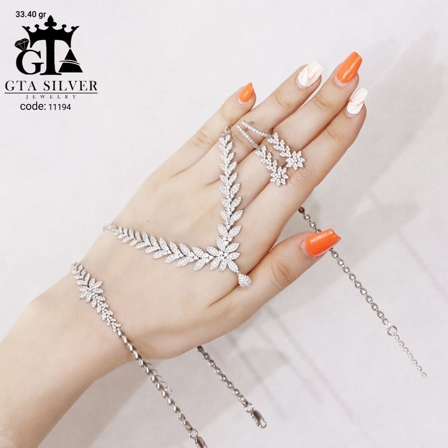 سرویس نقره مدل مارسا همراه با روکش آبطلای سفید؛ عیار 925، تمامی نگین های این سرویس جدید با روش جدید میکروستینگ مخراج کاری شده است.