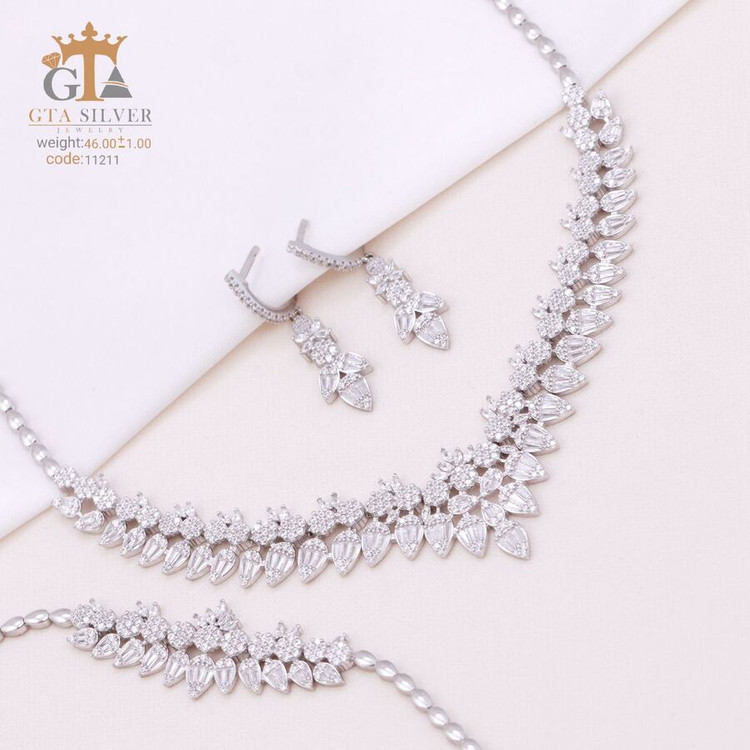 سرویس نقره مدل مارسا همراه با روکش آبطلای سفید؛ عیار 925، تمامی نگین های این سرویس جدید با روش جدید میکروستینگ مخراج کاری شده است.
