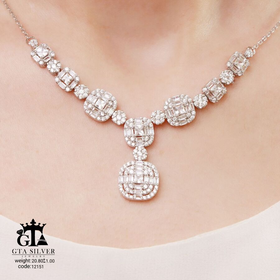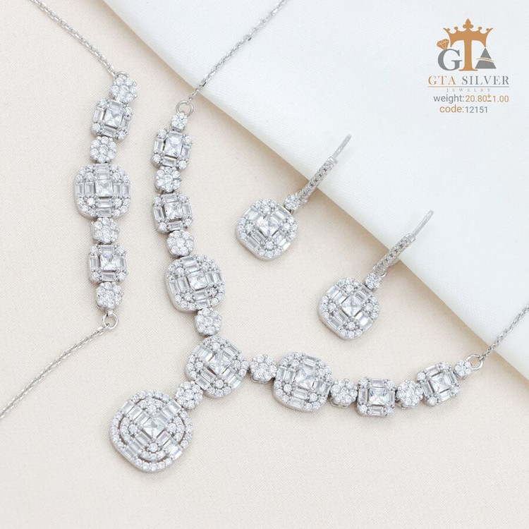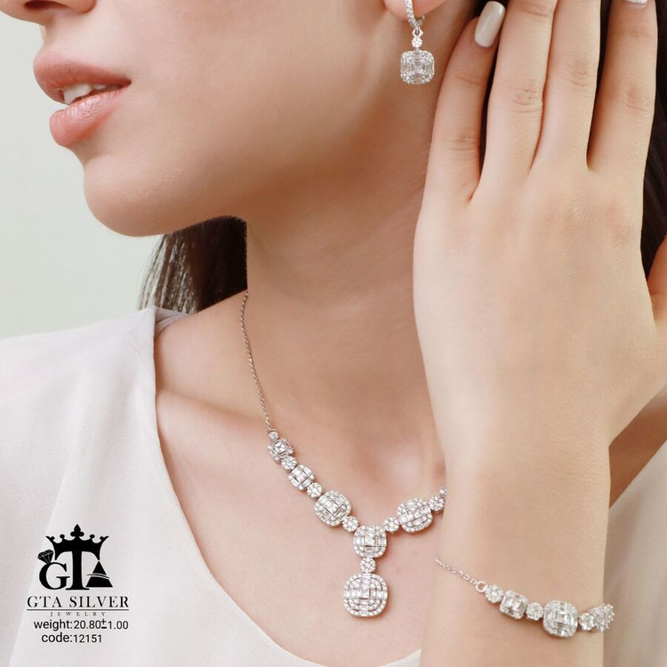 سرویس میکرو زنجیری نقره همراه با روکش آبطلای سفید؛ عیار 925، تمامی نگین های این سرویس جدید و ظریف با روش جدید میکروستینگ مخراج کاری شده است.