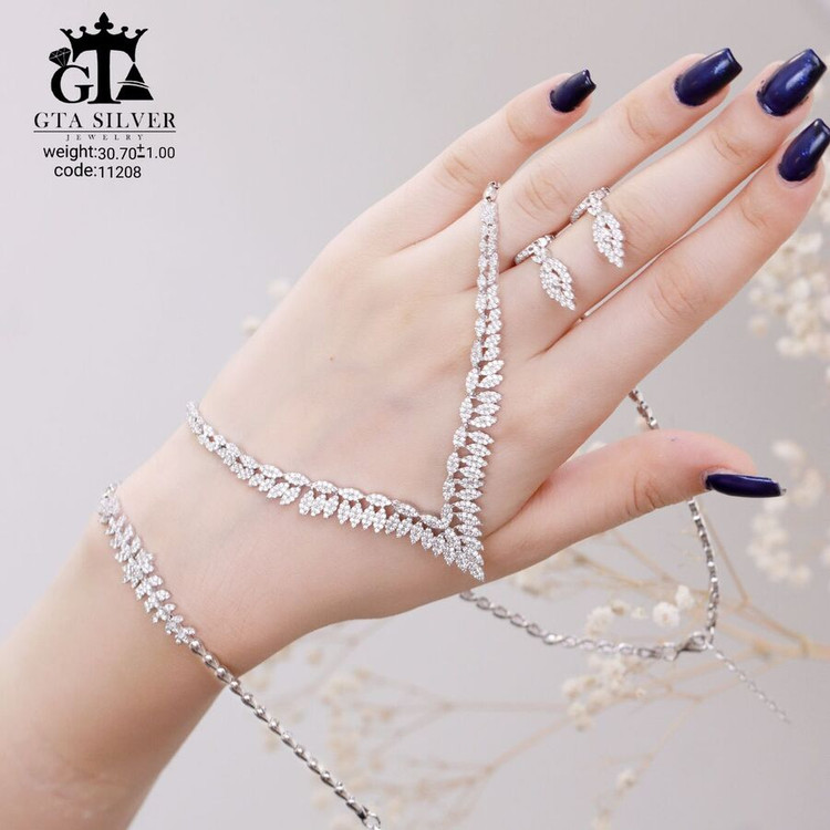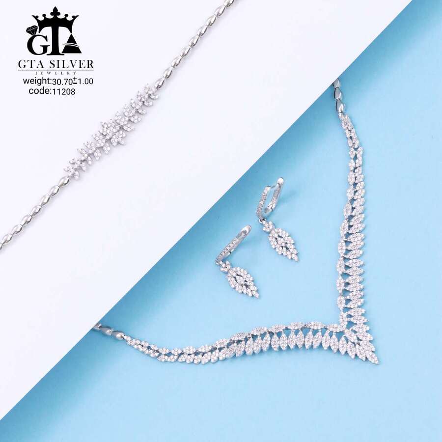 سرویس نقره مدل مارسا همراه با روکش آبطلای سفید؛ عیار 925، تمامی نگین های این سرویس جدید با روش جدید میکروستینگ مخراج کاری شده است.