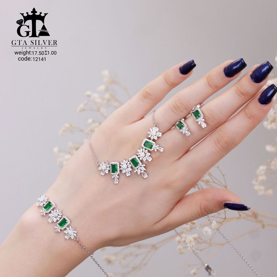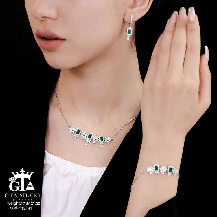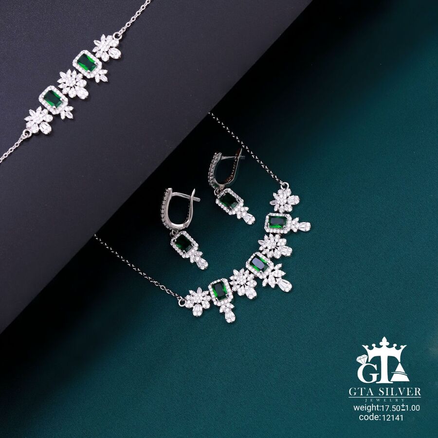 سرویس میکرو زنجیری نقره همراه با روکش آبطلای سفید؛ عیار 925، تمامی نگین های این سرویس جدید و ظریف با روش جدید میکروستینگ مخراج کاری شده است.