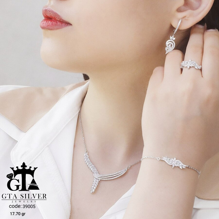 سرویس نقره مدل سوپر میکرو زنجیری همراه با روکش آبطلای سفید؛ عیار 925، تمامی نگین های این سرویس جدید با روش جدید میکروستینگ مخراج کاری شده است.