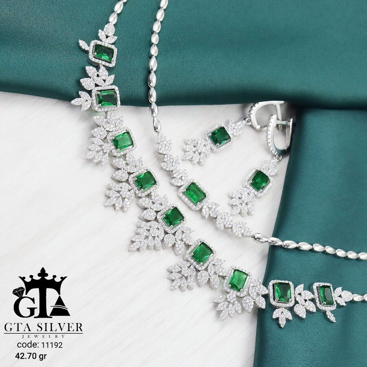 سرویس نقره مدل مارسا همراه با روکش آبطلای سفید؛ عیار 925، تمامی نگین های این سرویس جدید با روش جدید میکروستینگ مخراج کاری شده است