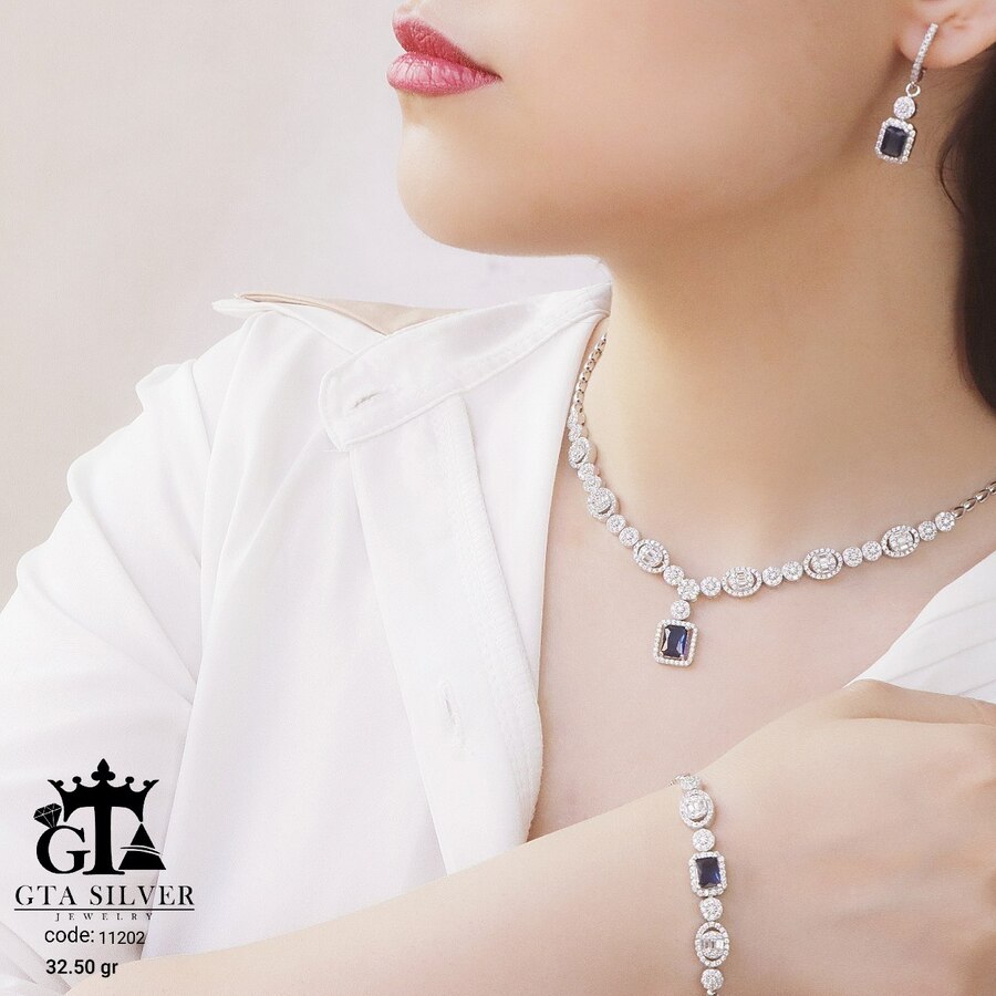 سرویس نقره مدل مارسا همراه با روکش آبطلای سفید؛ عیار 925، تمامی نگین های این سرویس جدید با روش جدید میکروستینگ مخراج کاری شده است