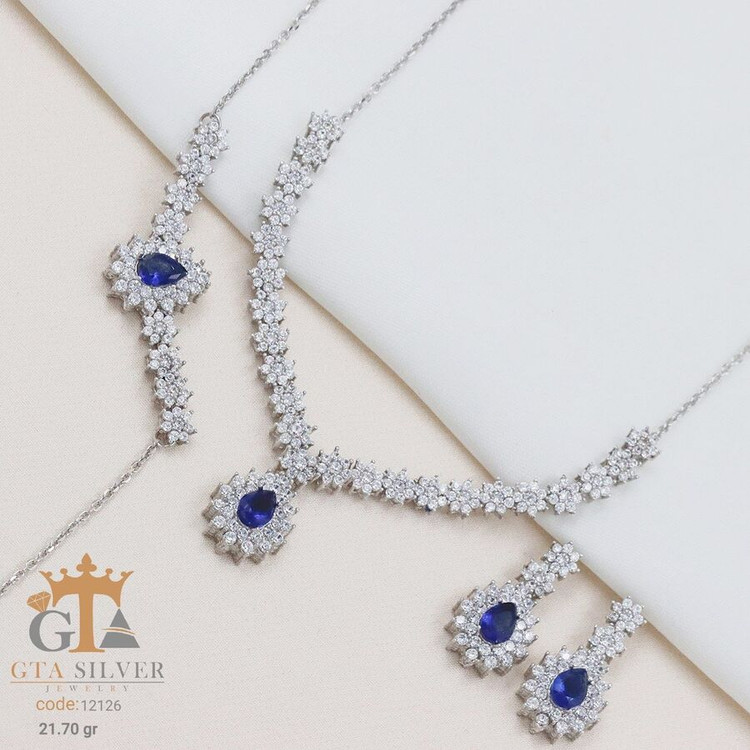 سرویس میکرو زنجیری نقره همراه با روکش آبطلای سفید؛ عیار 925، تمامی نگین های این سرویس جدید و ظریف با روش جدید میکروستینگ مخراج کاری شده است.