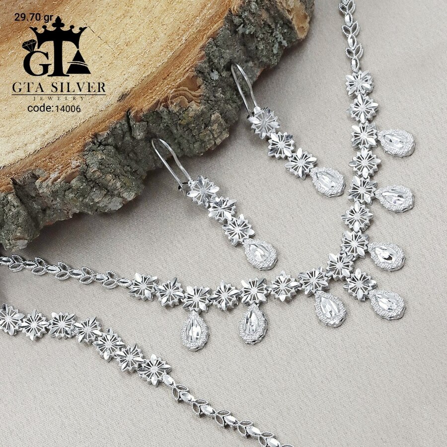 سرویس تراش نقره همراه با روکش آبطلای سفید و عیار 925؛ تمامی مدل های تراش بدون نگین می باشند.