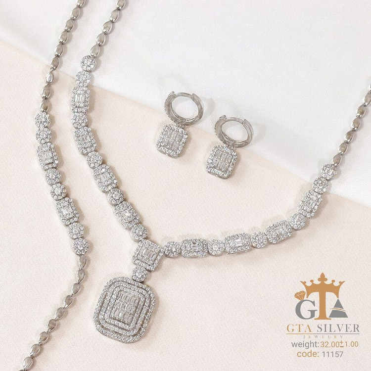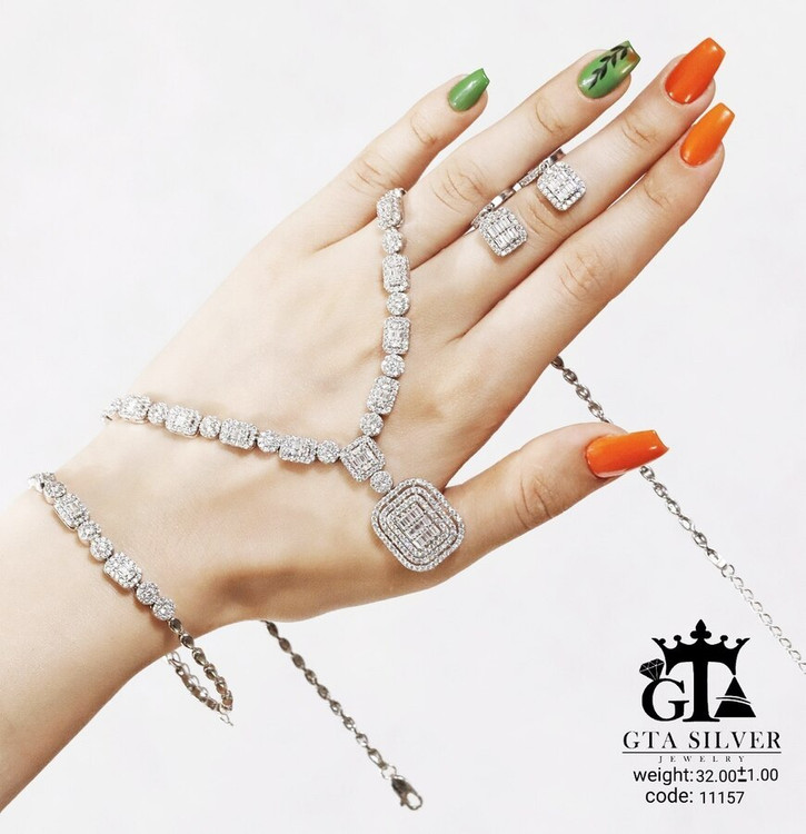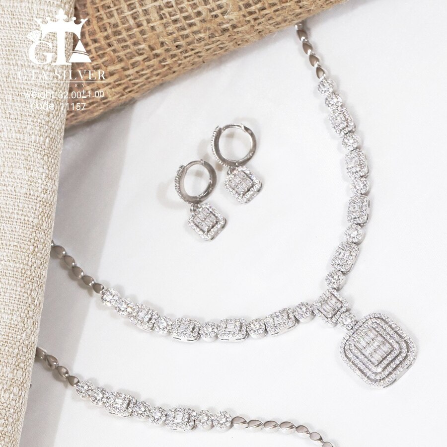 سرویس نقره مدل مارسا طرح امرالدکات همراه با روکش آبطلای سفید؛ عیار 925، تمامی نگین های این سرویس جدید با روش جدید میکروستینگ مخراج کاری شده است.