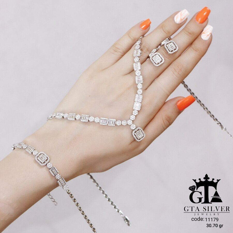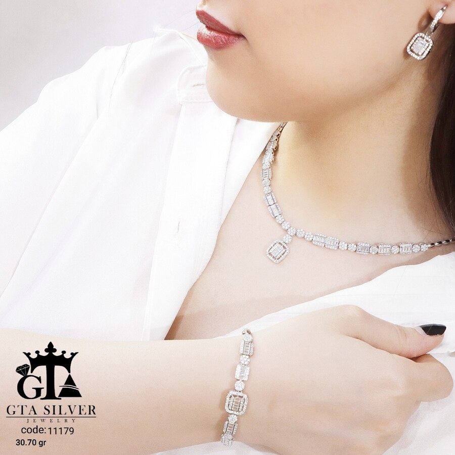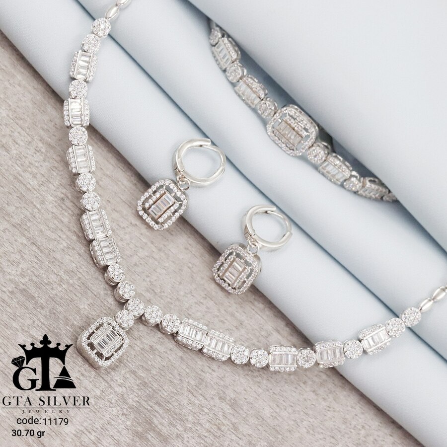سرویس نقره مدل مارسا همراه با روکش آبطلای سفید؛ عیار 925، تمامی نگین های این سرویس جدید با روش جدید میکروستینگ مخراج کاری شده است.