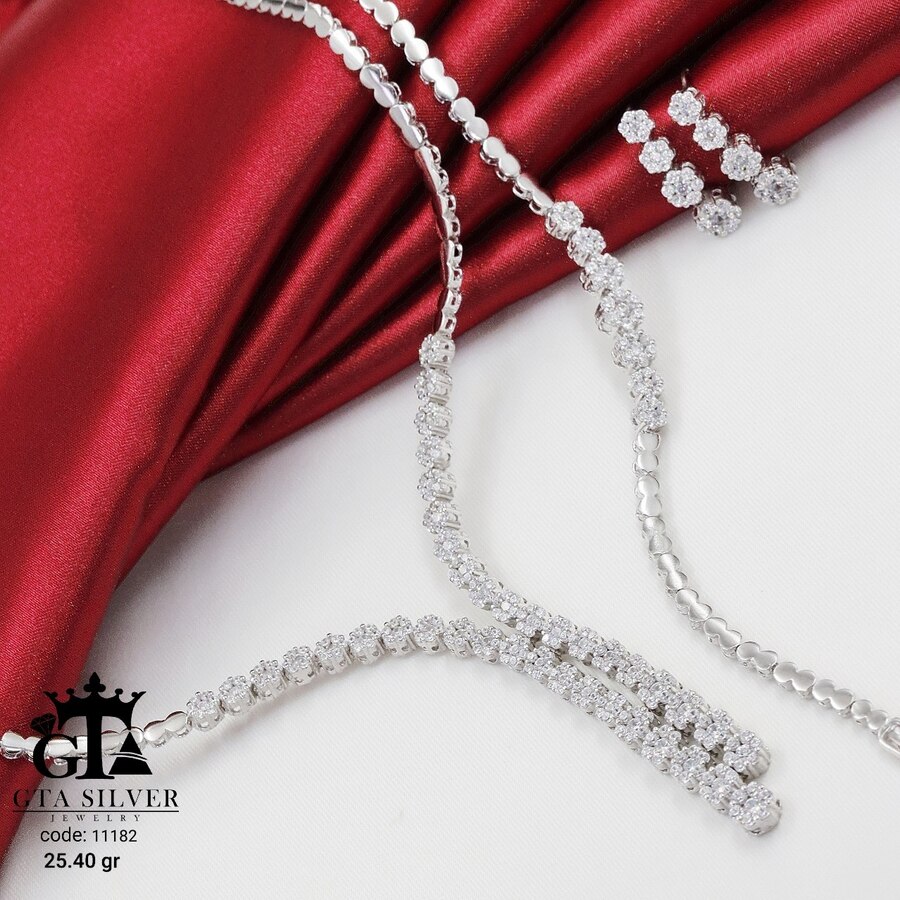 سرویس نقره مدل مارسا همراه با روکش آبطلای سفید؛ عیار 925، تمامی نگین های این سرویس جدید با روش جدید میکروستینگ مخراج کاری شده است.