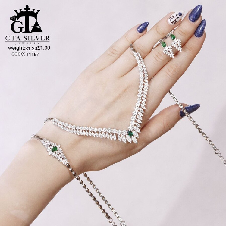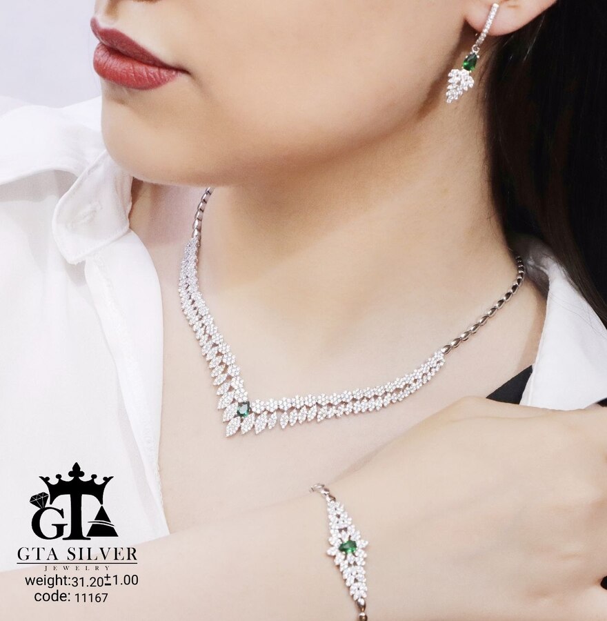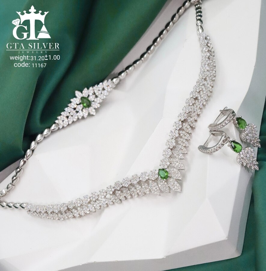 سرویس نقره مدل مارسا همراه با روکش آبطلای سفید؛ عیار 925، تمامی نگین های این سرویس جدید با روش جدید میکروستینگ مخراج کاری شده است.
